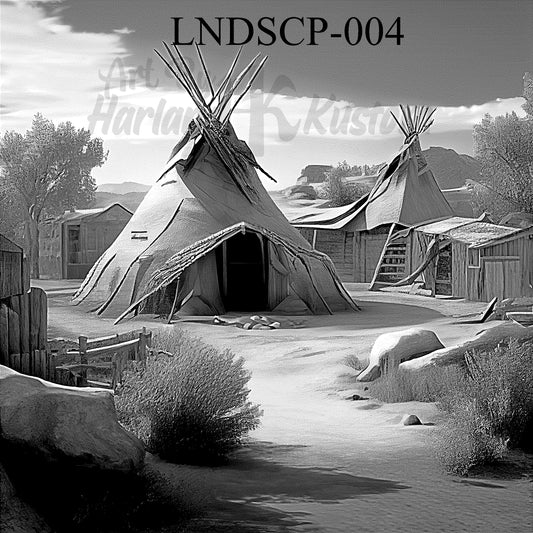 "Echoes of the Plains – Native Encampment Scene" SKU: LNDSCP-004