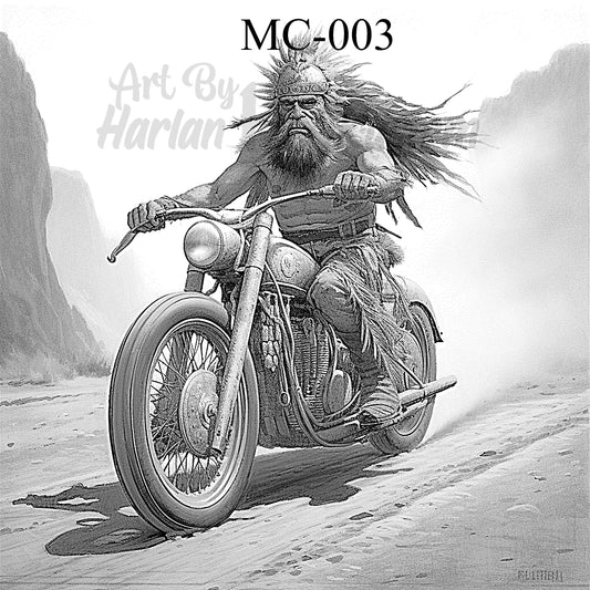 "Spirit Rider – Tribal Chief on a Classic Motorcycle" SKU: MC-009