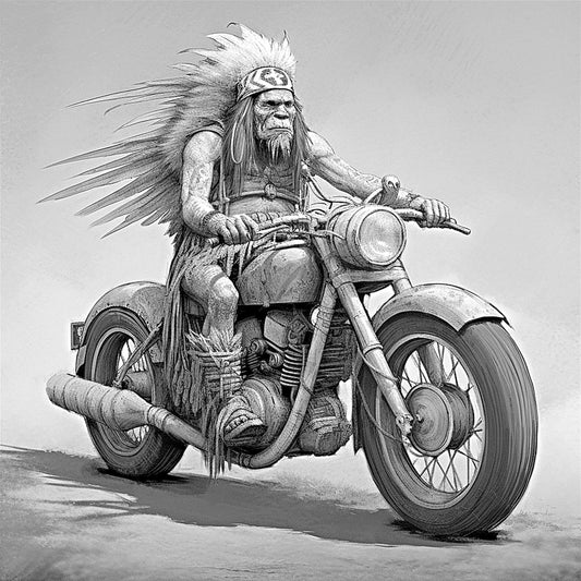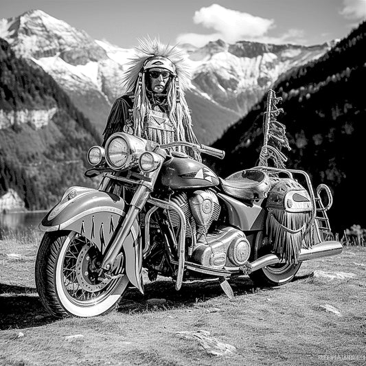 "Spirit Rider β Tribal Chief on a Classic Motorcycle" SKU: MC-009