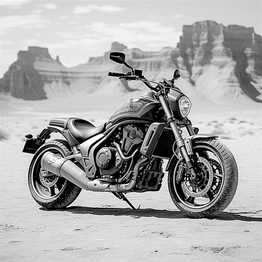 "Sandstorm Steel β Desert Power Motorcycle Art" SKU: MC-008