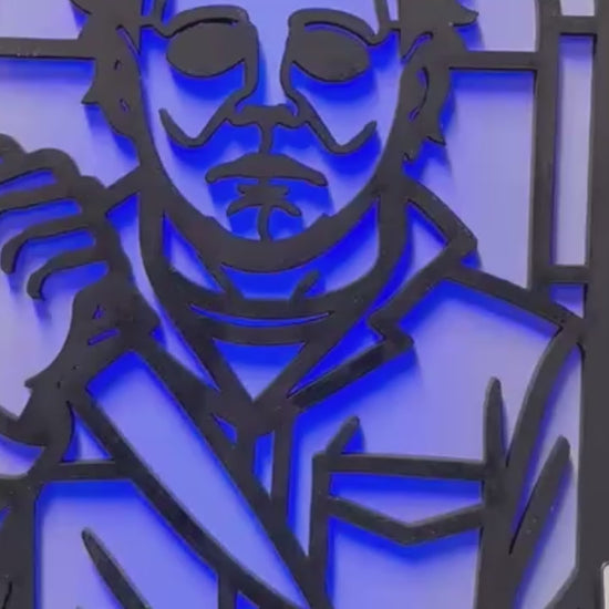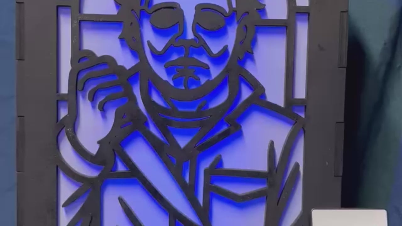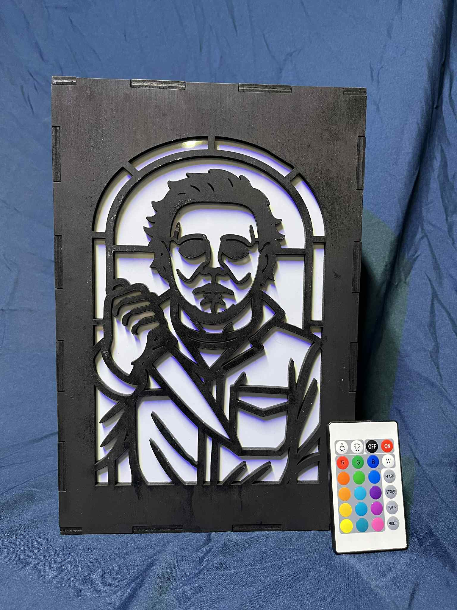 The Shape has returned… in glowing form. The Michael Myers Light Box Lamp captures the chilling calm of Haddonfield’s most iconic slasher. Precision laser-cut from layered wood and backlit with customizable RGB lighting, this piece adds a haunting atmosphere to any room — day or night.