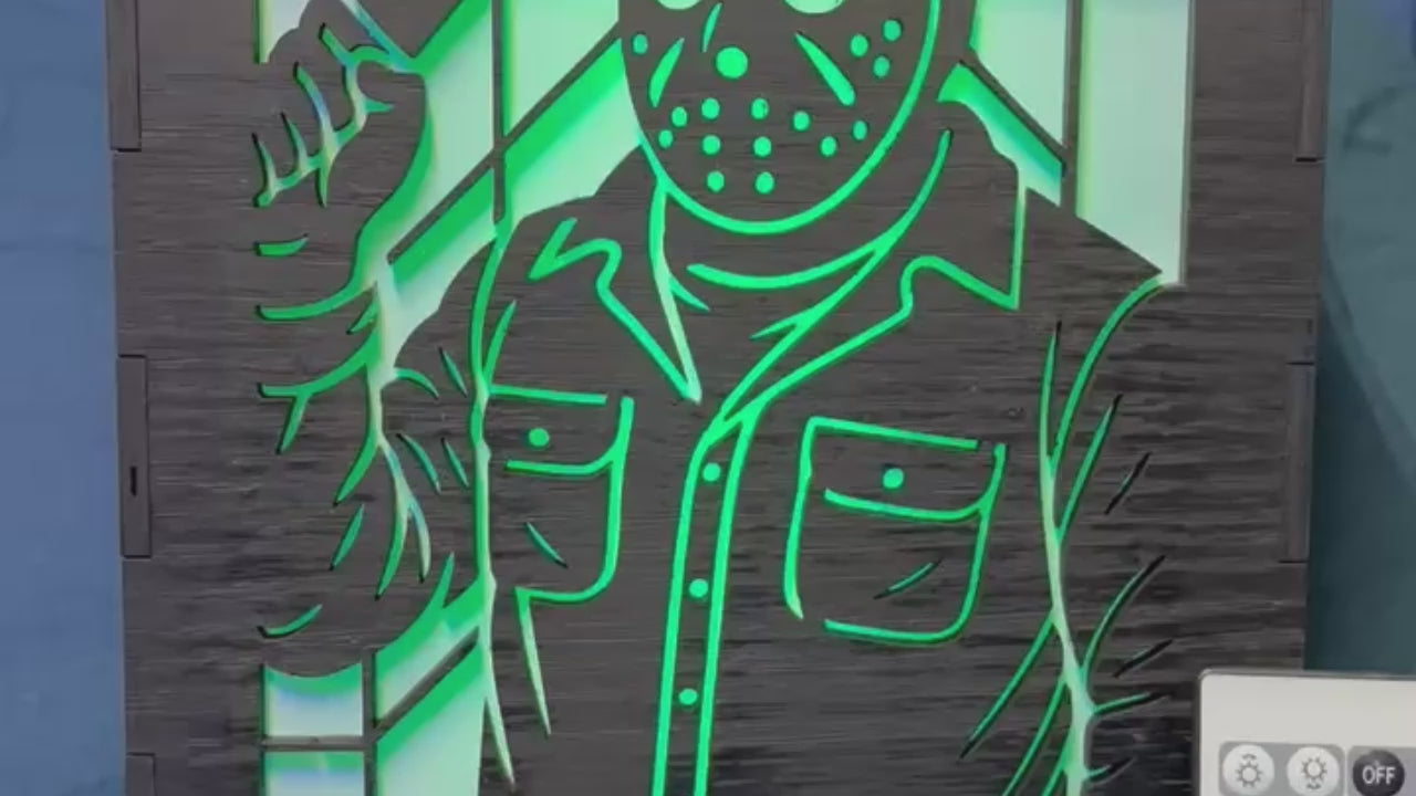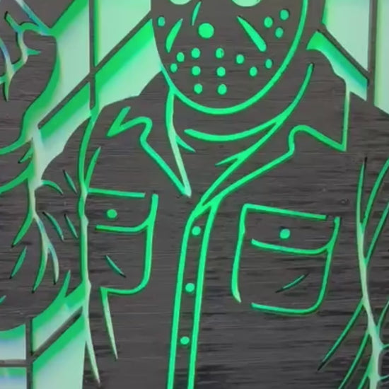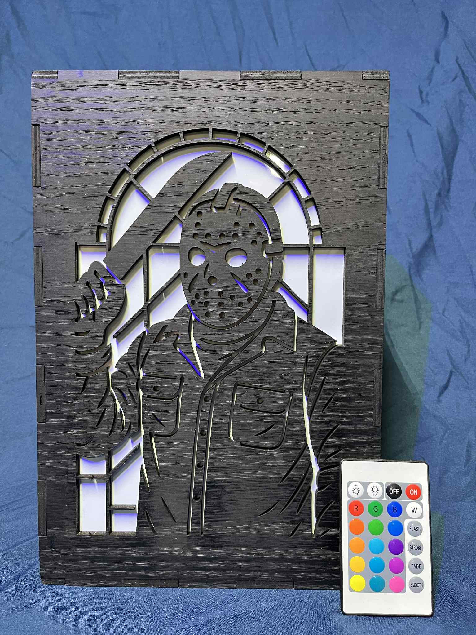 Bring a chilling glow to your space with this handcrafted Jason Horror Light Box Lamp — laser-cut with precision and powered by vivid RGB lighting. Featuring the iconic masked slasher design, this piece captures the perfect mix of craftsmanship and horror nostalgia.